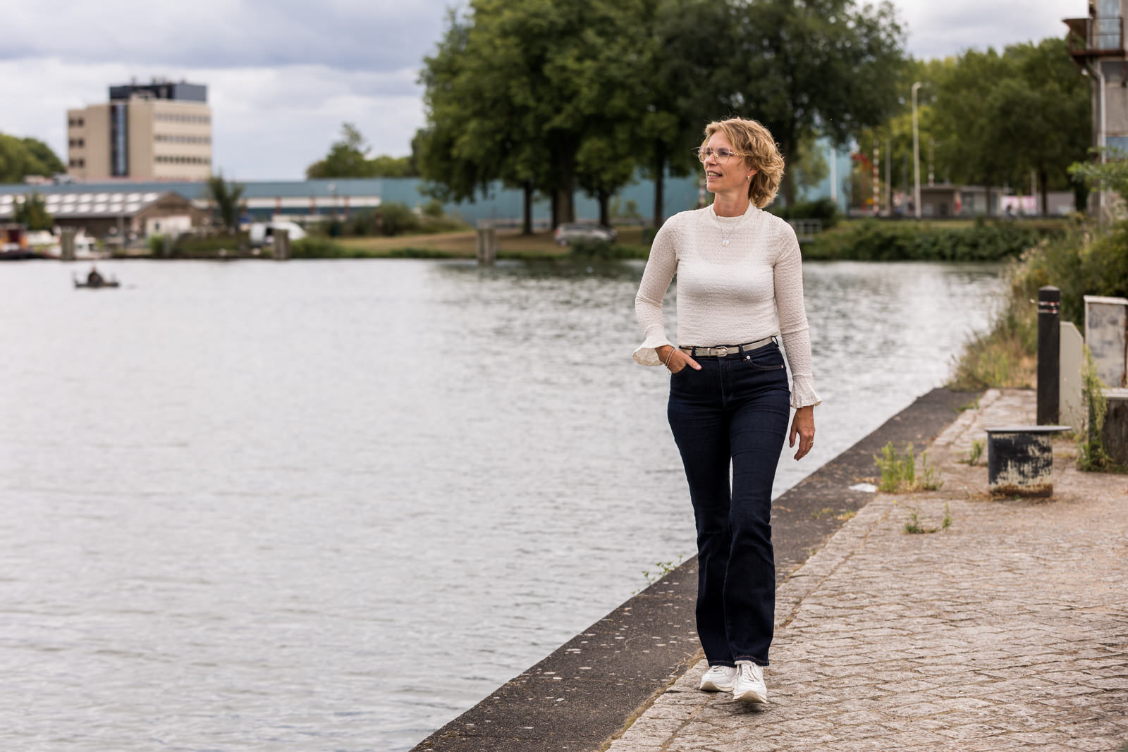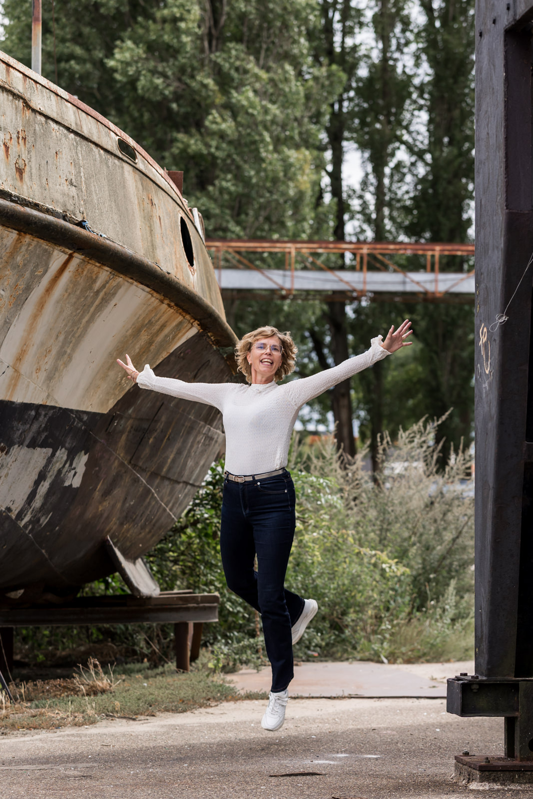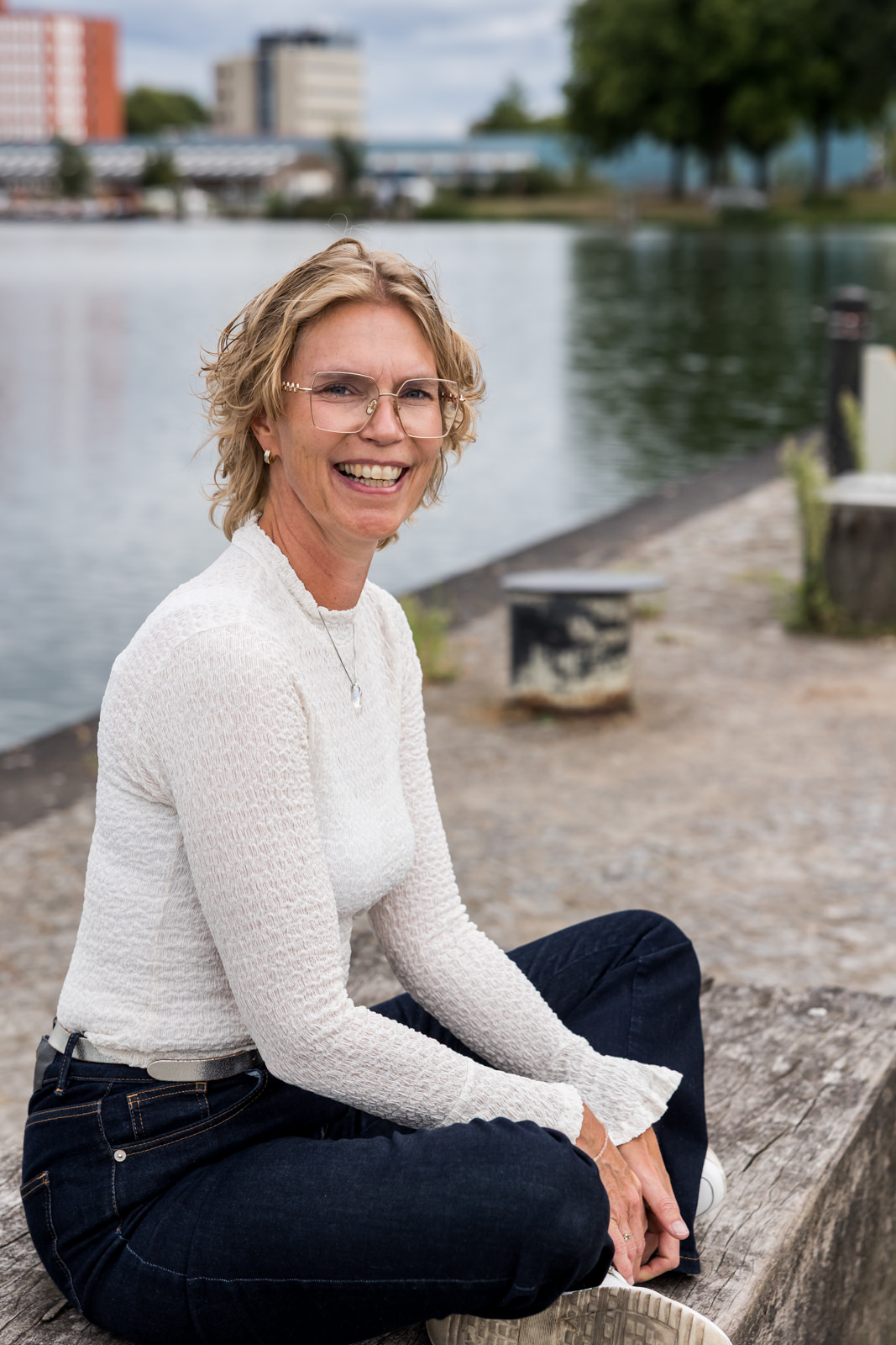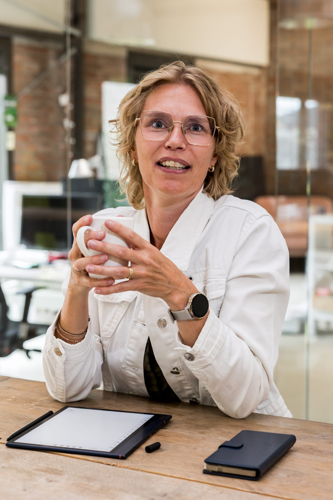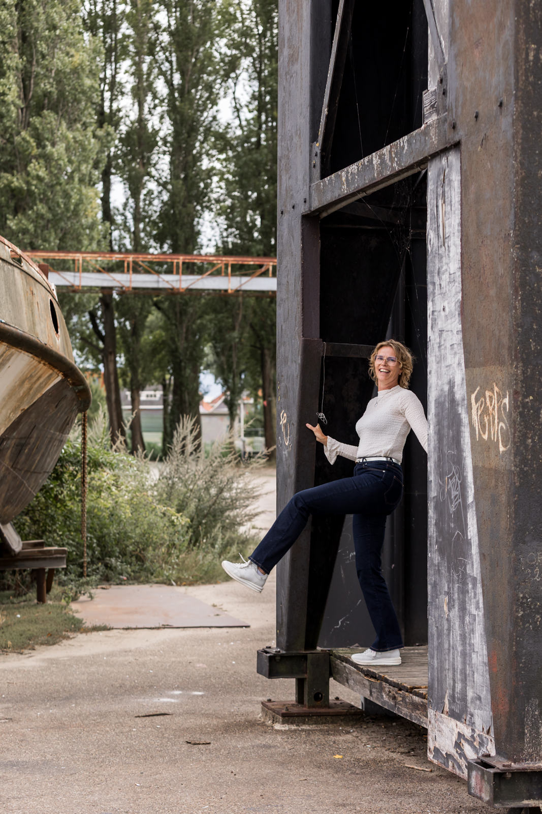 Daarnaast zijn we naar buiten gegaan, het Havenkwartier in Deventer. Met de haven en het industriële karakter op de achtergrond ontstaat er een sfeer die goed aansluit bij haar kantoor, dat zich ook in dit gebied bevindt.