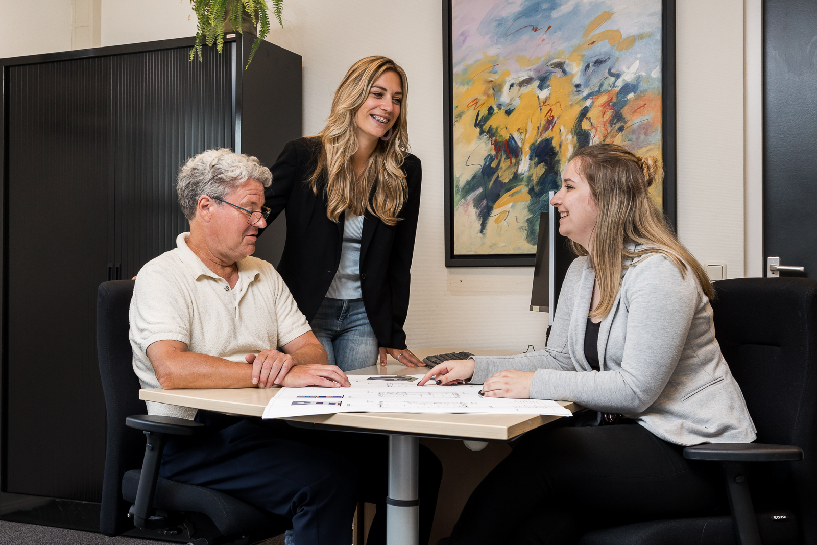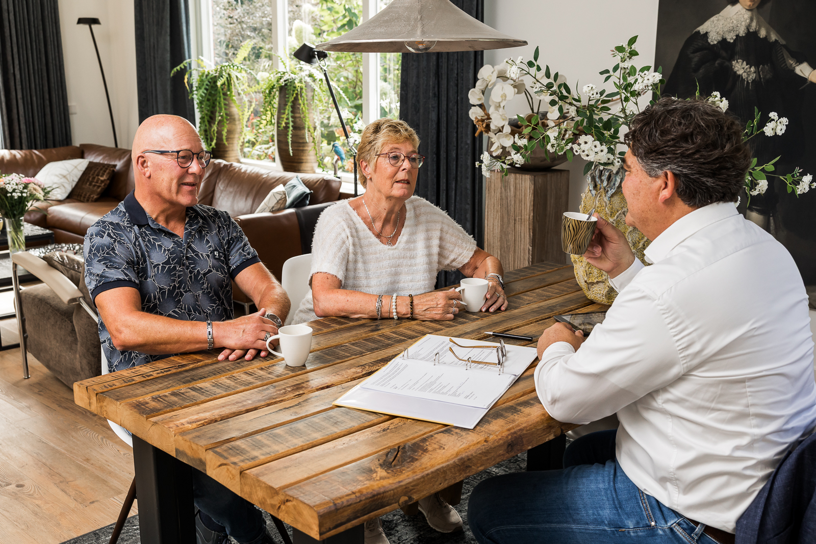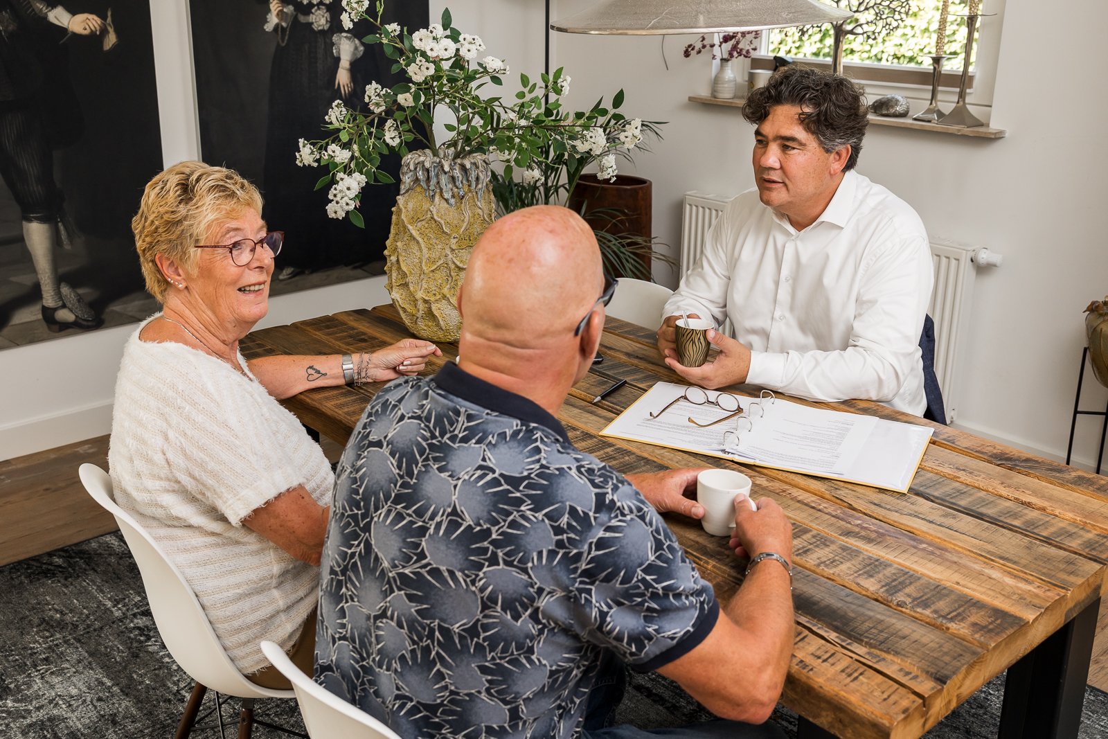 We hebben op meerdere locaties gefotografeerd. Op kantoor in Twello maakten we portretten en beelden van werksituaties. Daar fotografeerden we ook momenten waarin zij met klanten aan tafel zitten in een huiselijke setting.