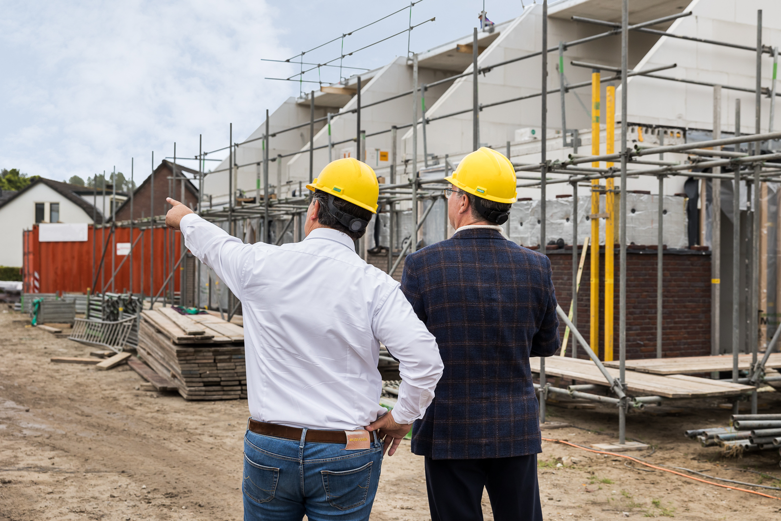 Daarnaast hebben we groepsfoto’s gemaakt in een lossere stijl, buiten in de natuur. Dat paste goed bij wie zij zijn en hoe zij zich willen laten zien. Ook zijn we naar twee nieuwbouwlocaties gegaan. In Klarenbeek maakten we foto’s op de bouw, samen met de eigenaren. In Wilp fotografeerden we bij een nieuwbouwproject dat al was opgeleverd. Daarmee ontstond een compleet beeld van hun werk en van de verschillende onderdelen binnen hun dienstverlening.