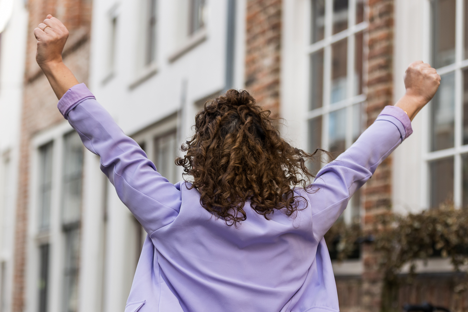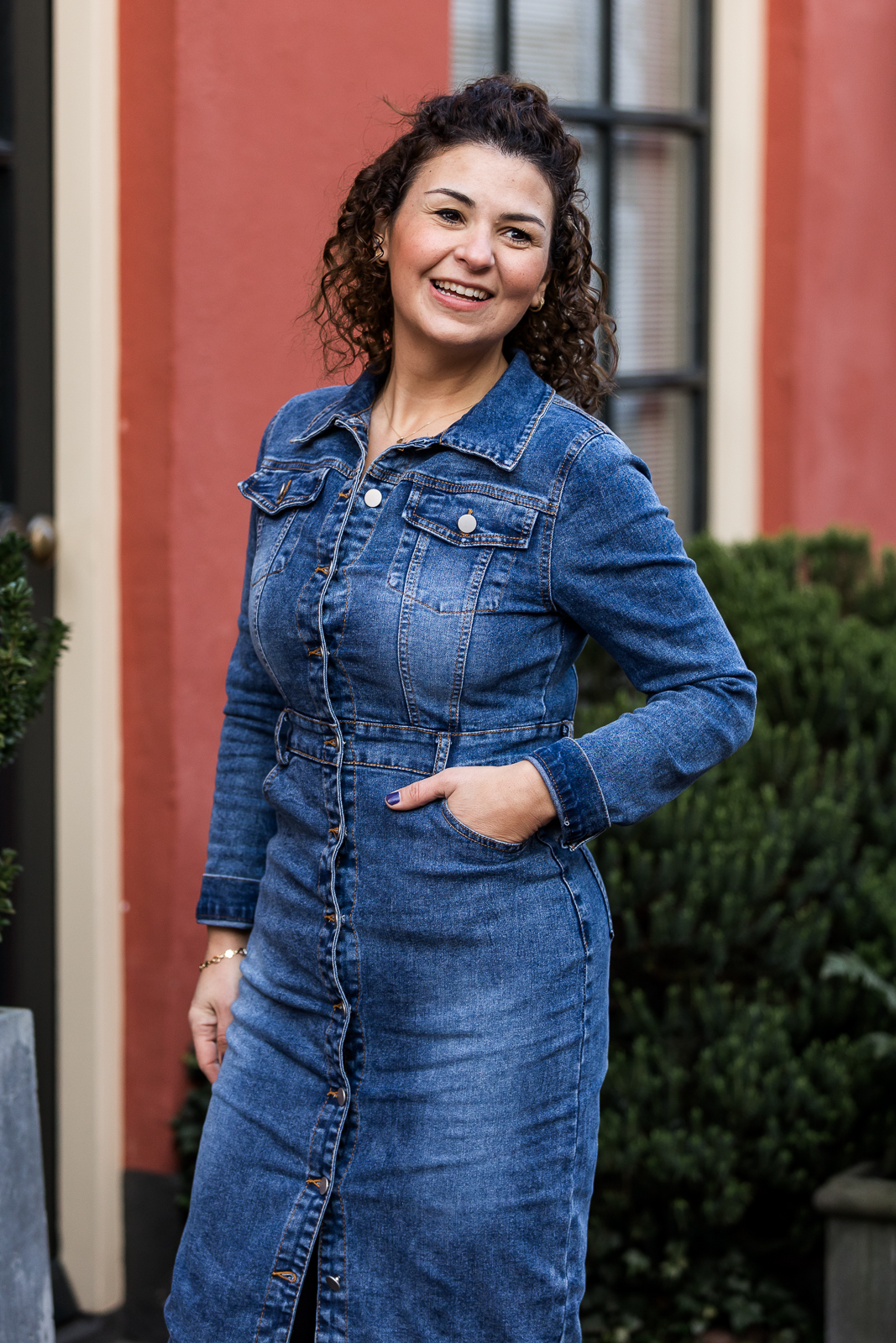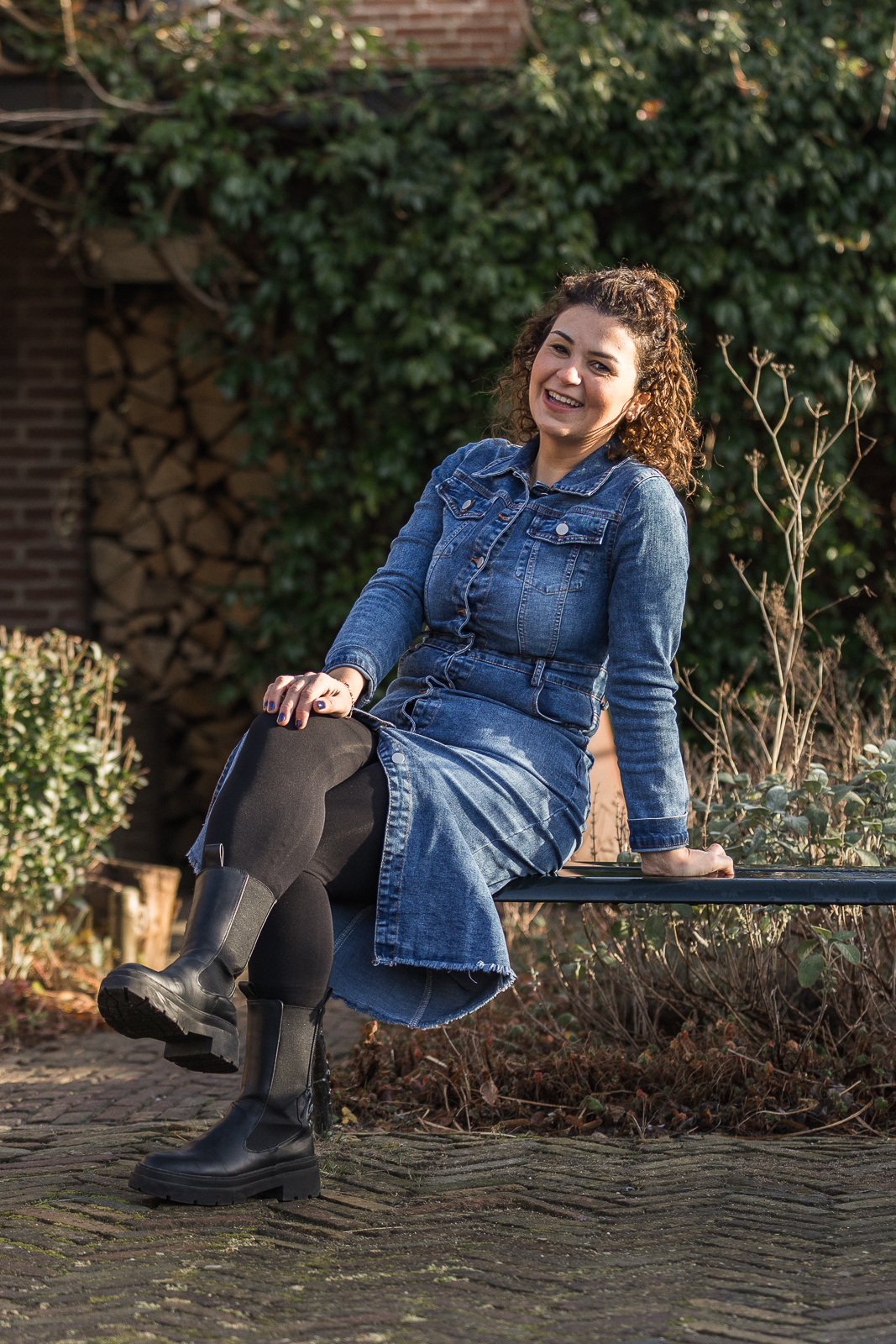 Voor deze shoot hebben we gekozen voor de binnenstad van Deventer. Deze locatie biedt veel variatie en kleur, wat goed aansluit bij haar uitstraling.