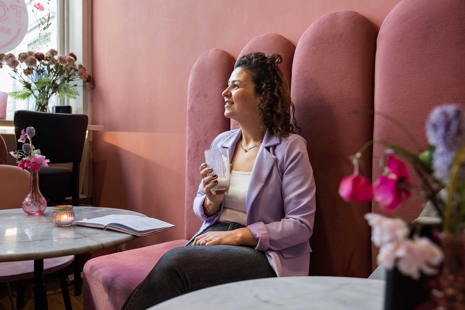 Tijdens de shoot hebben we samen gekeken naar de plekken en wat het beste bij haar past. Er was ruimte om te sparren en om ideeën direct uit te proberen. Dat zorgt ervoor dat de beelden goed aansluiten bij haar bedrijf en hoe zij zich wil laten zien.