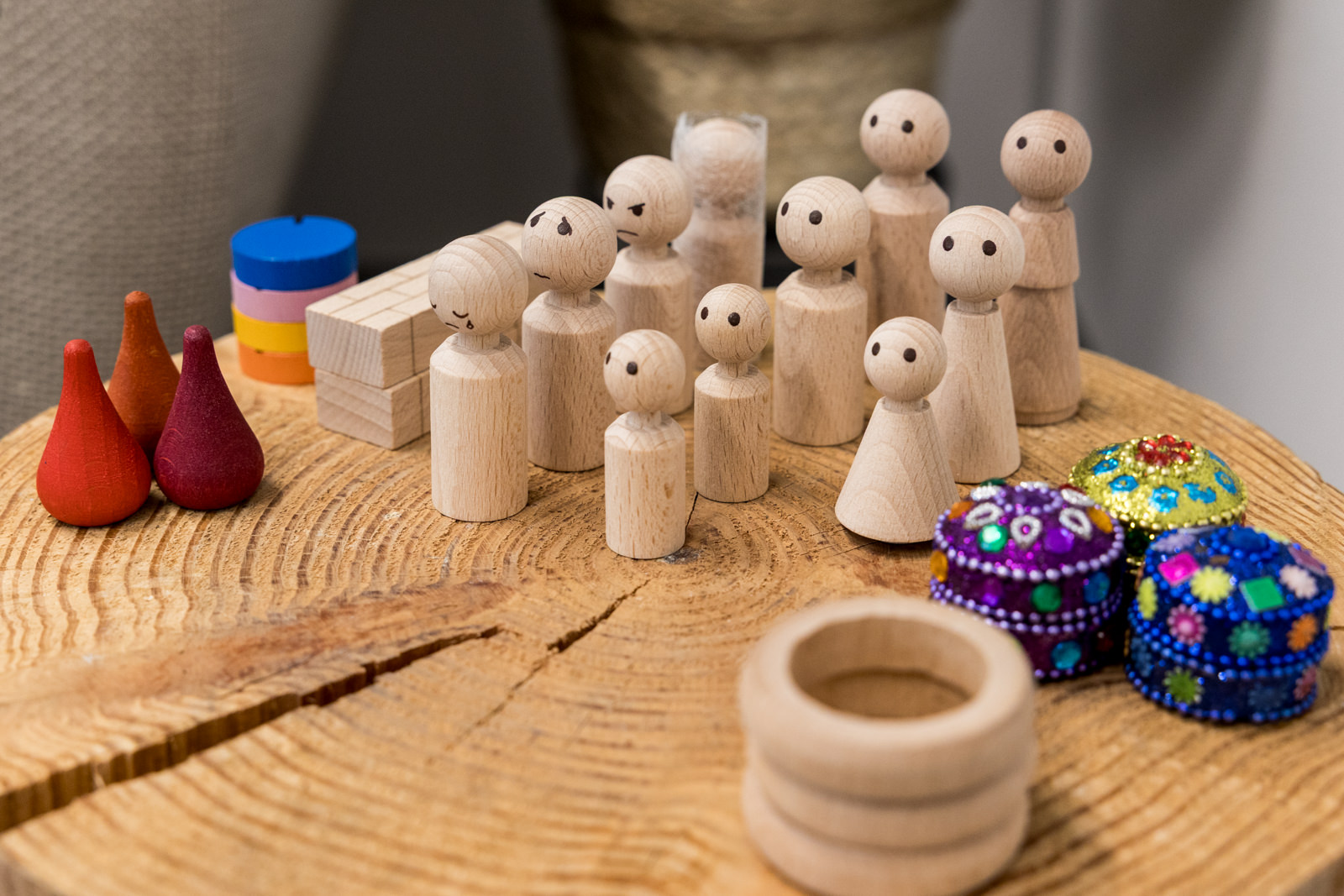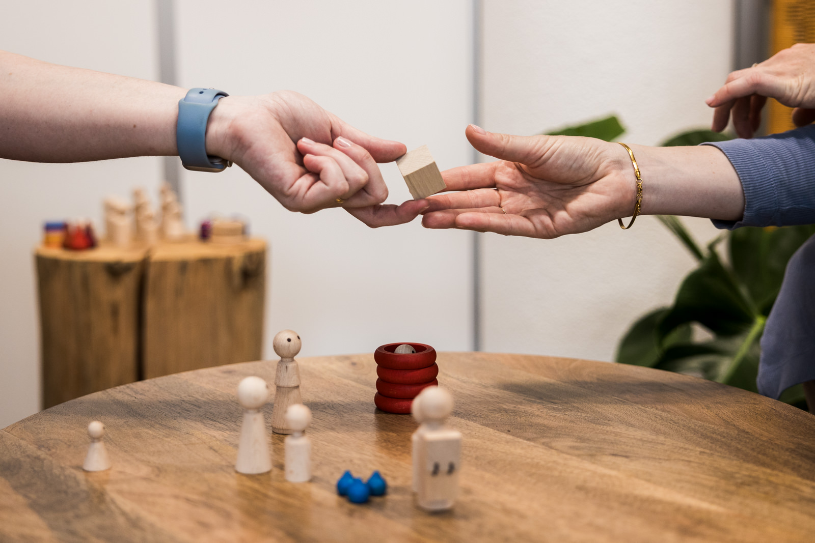 Daarnaast hebben we situaties gefotografeerd waarin zij werkt met cliënten, aangevuld met materialen die zij gebruikt in haar begeleiding. Dit geeft een duidelijk beeld van hoe zij werkt en wat iemand kan verwachten.
